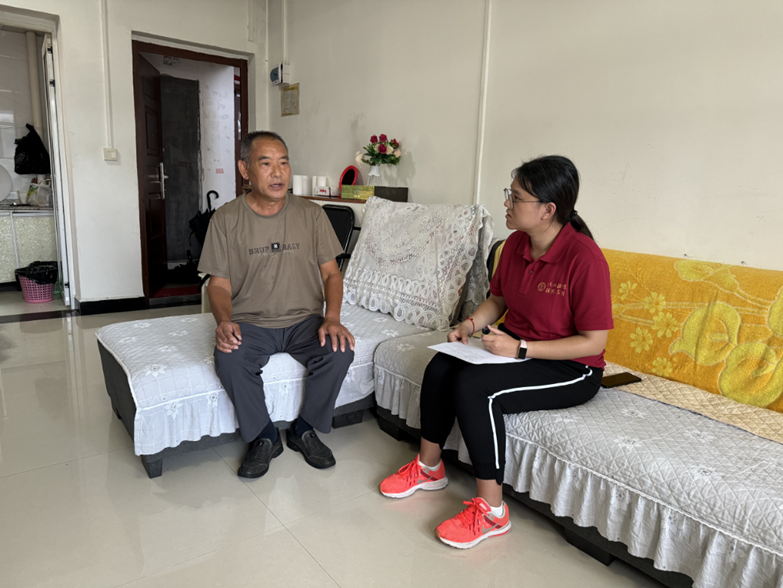 ▲博士生汤佳访谈玉秀街道脱贫户郭正祥