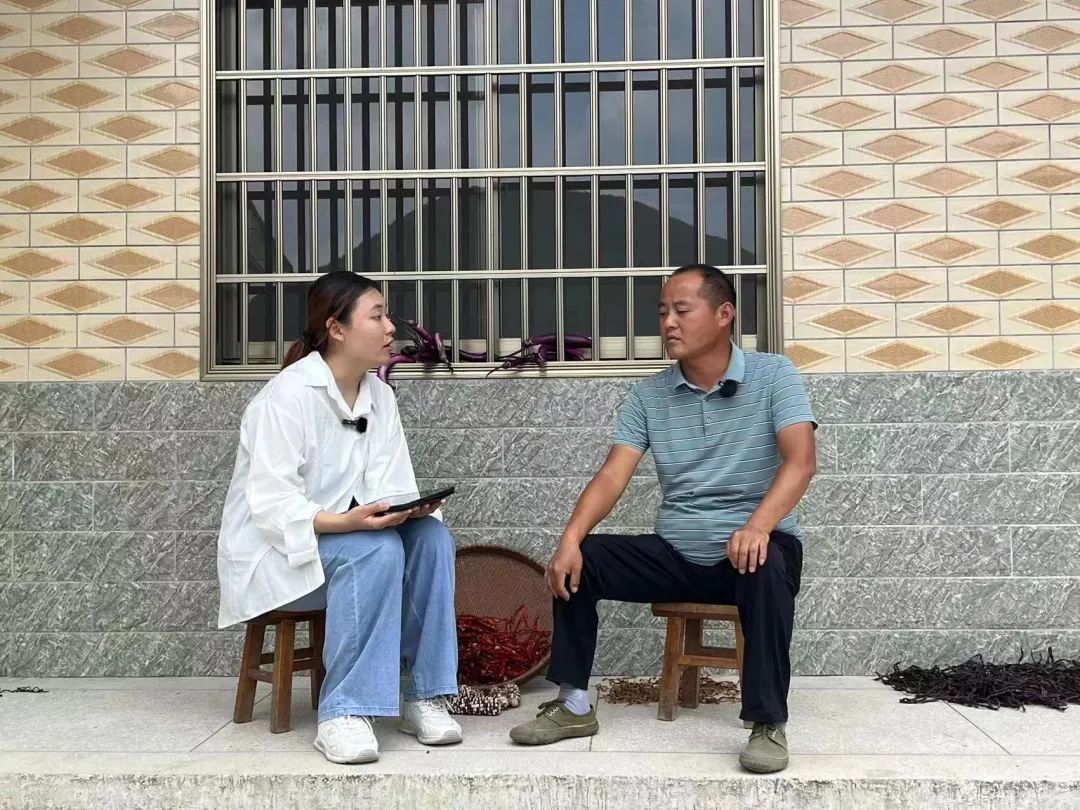 ▲李鑫泽同学访谈大山村书记王自建