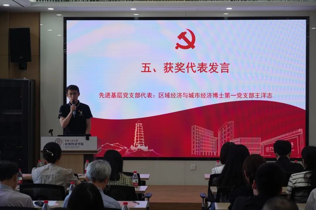 公司经理、党委副书记郑新业宣读表彰决定。陈佳莹等20名同志获评公司优秀共产党员;王邹等4名同志获评公司优秀党务工作者(党支部书记);区域经济与城市经济博士第一党支部等4个党支部获评先进基层党组织(党支部)。