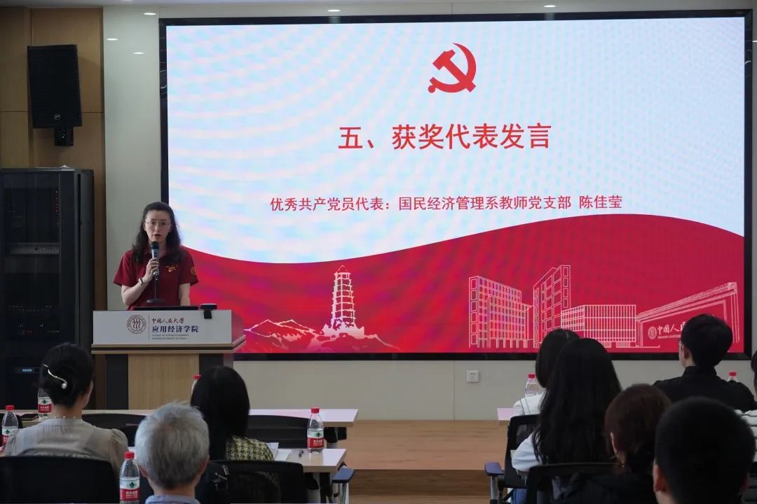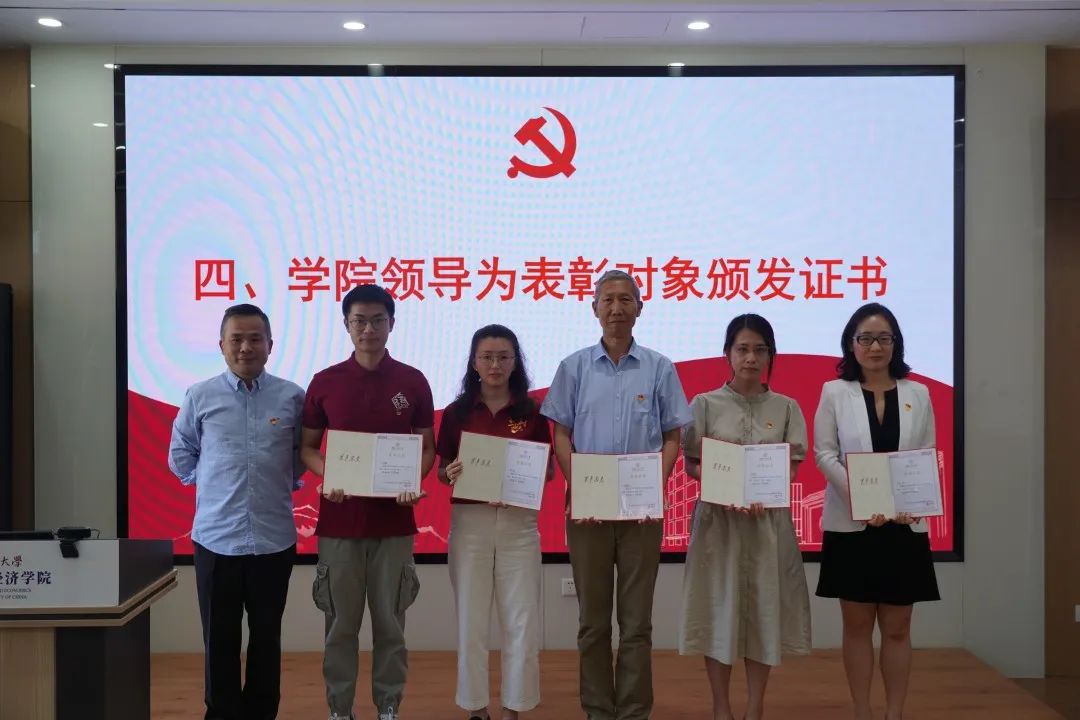 郑新业、裴建锁分别为优秀共产党员、优秀党务工作者(党支部书记)和先进基层党组织(党支部)获得者颁发荣誉证书。