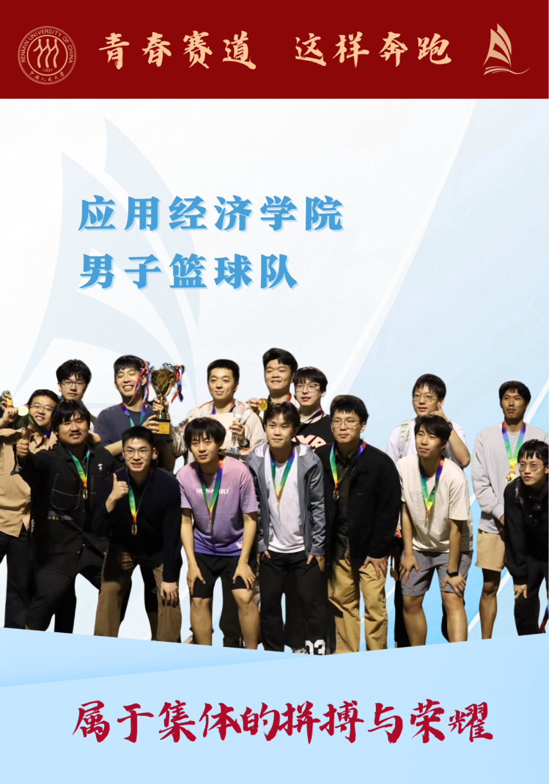 不知不觉,我已经在应经男篮留下了六年的脚步。从2019年到2025年,我见证了球队的每一次起伏,从丙组附加赛惜败,到乙组夺冠、进军甲组,大大小小的数十场比赛背后,是轻伤不下火线的毅力,是落后从不放弃的团结,也是球队上下所有人的坚持与付出。对于我而言,这不仅是篮球的旅程,更是一个关于坚持、拼搏与团结的故事。在面对困难和挑战时,我们从不轻言放弃,正是这份不屈不挠的精神,成就了应经男篮的辉煌。非常幸运,我的人大篮球生涯和应经男篮的发展高度重叠,经历了球队跨过低谷,走向高峰的进取历程。也非常期待,未来的应经男篮能继续以不息的斗志和坚韧的毅力取得更加辉煌的战果,书写更多属于应经的青春乐章。