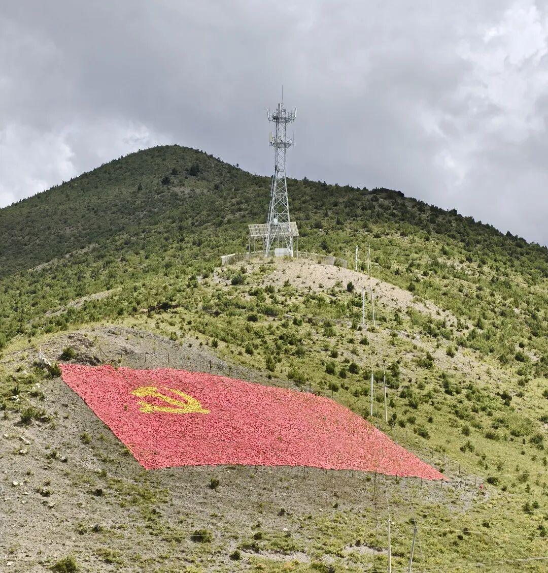 ▲洛隆县山上用花绣成的党旗