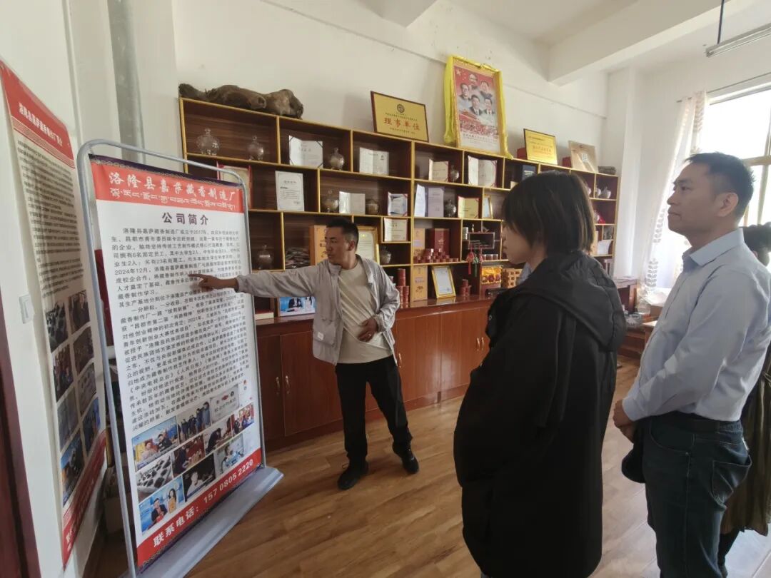 8月17日下午,沿江采撷队到达洛隆县教育局职业教育中心,深入调研马利镇藏香产业,了解当地藏香传承发展情况。洛隆县嘉萨藏香制造厂成立于2017年,由回乡创业的老员工、昌都市青年委员朗卡次旺创建。这是一家专注于藏香生产的企业,始终坚持传统工艺制作模式精心打造藏香。目前,公司拥有6名固定员工,其中老员工2人、中专毕业生2人、初中毕业生2人;另有23名短期工,均为本地老员工和老百姓。通过藏香产业的发展,显著带动了周围居民就业。