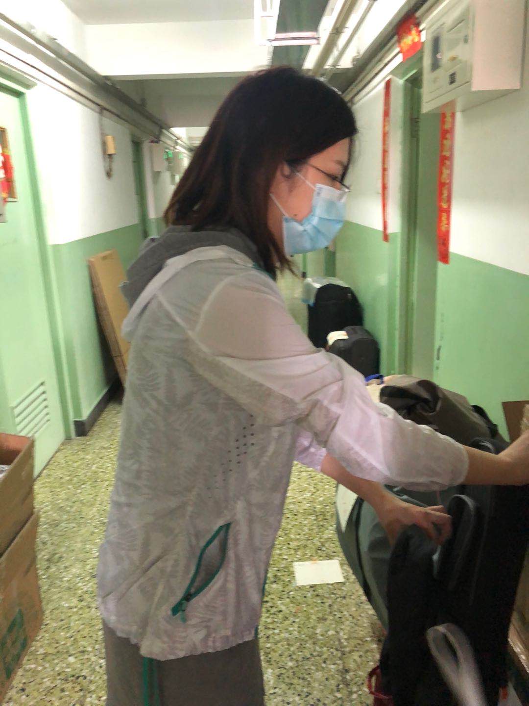 博士生志愿者沈煜在整理物资