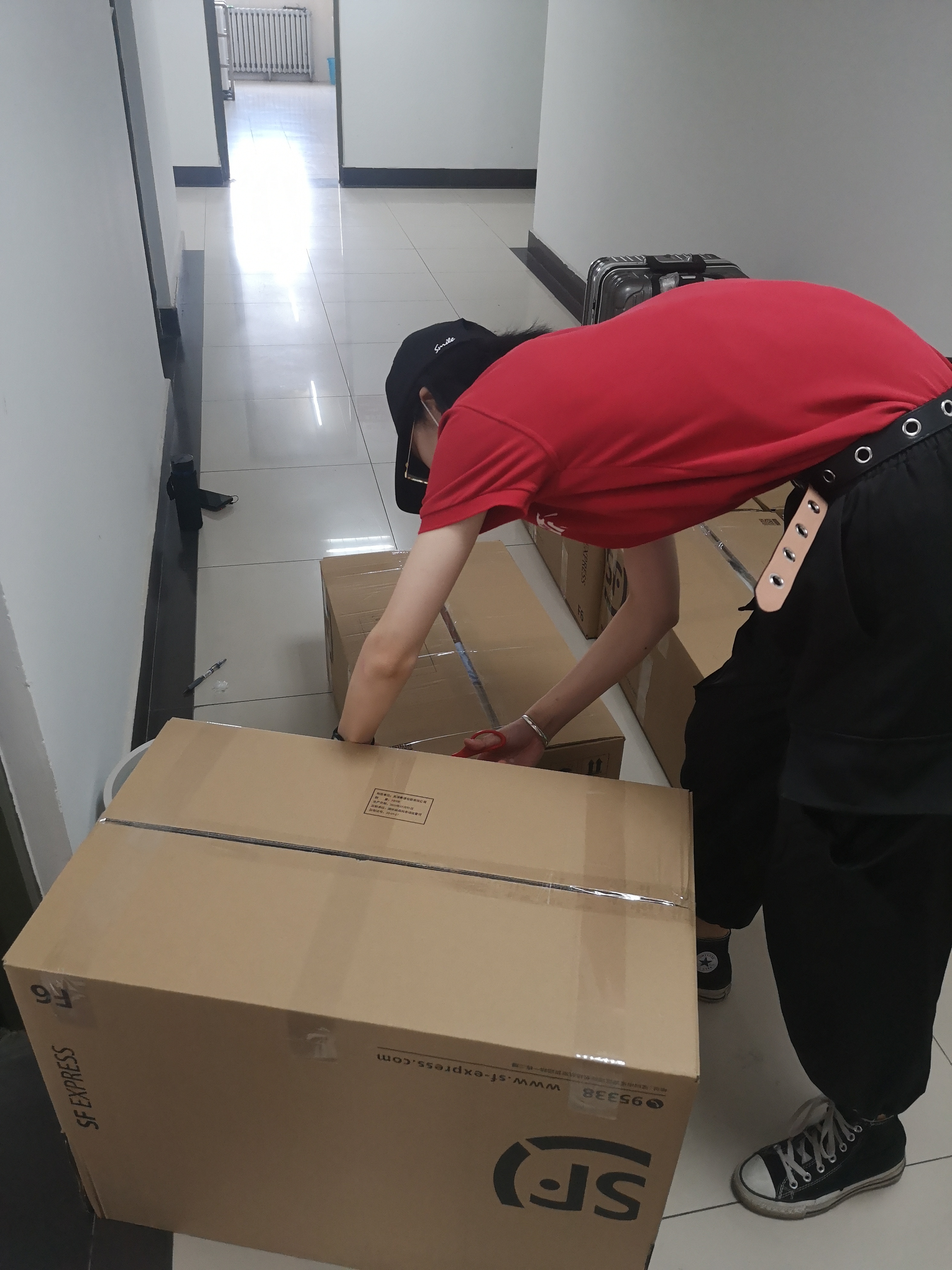本科生志愿者孔攀、马文心在准备打包箱