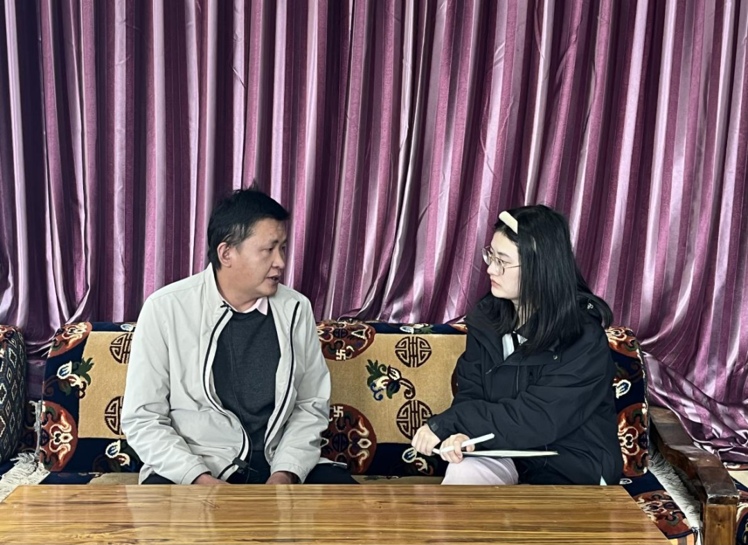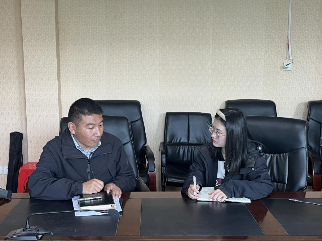 ▲西藏大学经济与管理公司硕士生任文丽访谈当雄县原乡村振兴局局长索朗曲旦