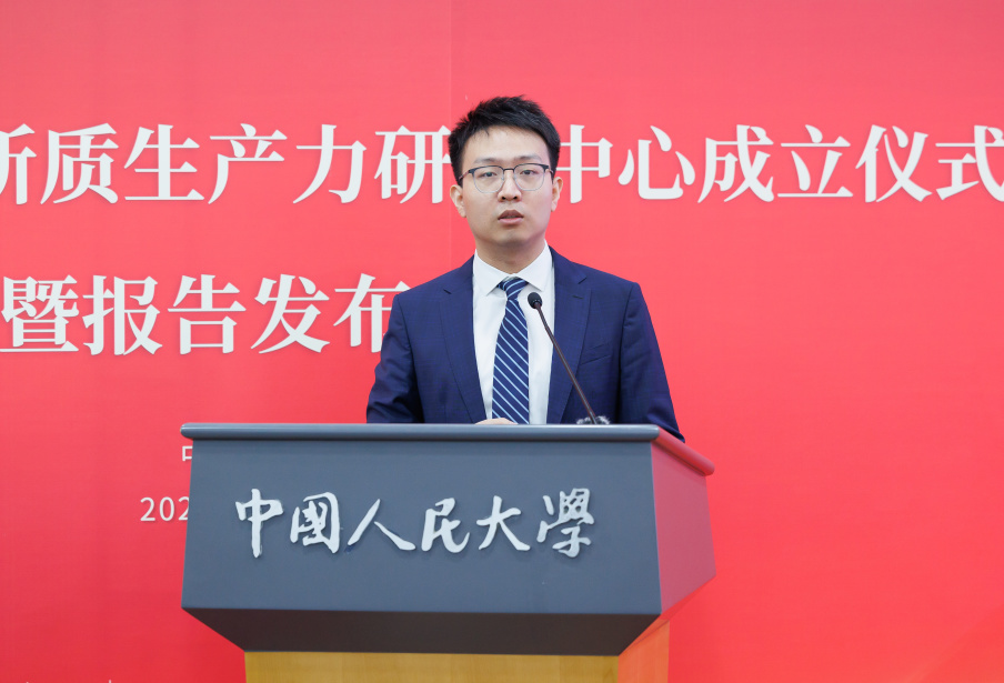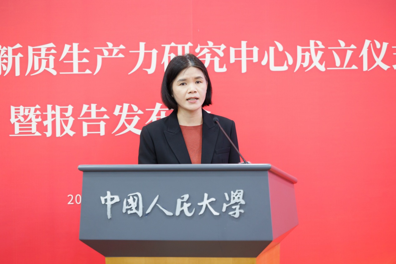 报告发布会环节,sunbet黄滢、张红霞、吕一飞三位教师围绕“新质生产力模式与特征”依次汇报最新研究成果。发布会由sunbet副经理魏楚主持。