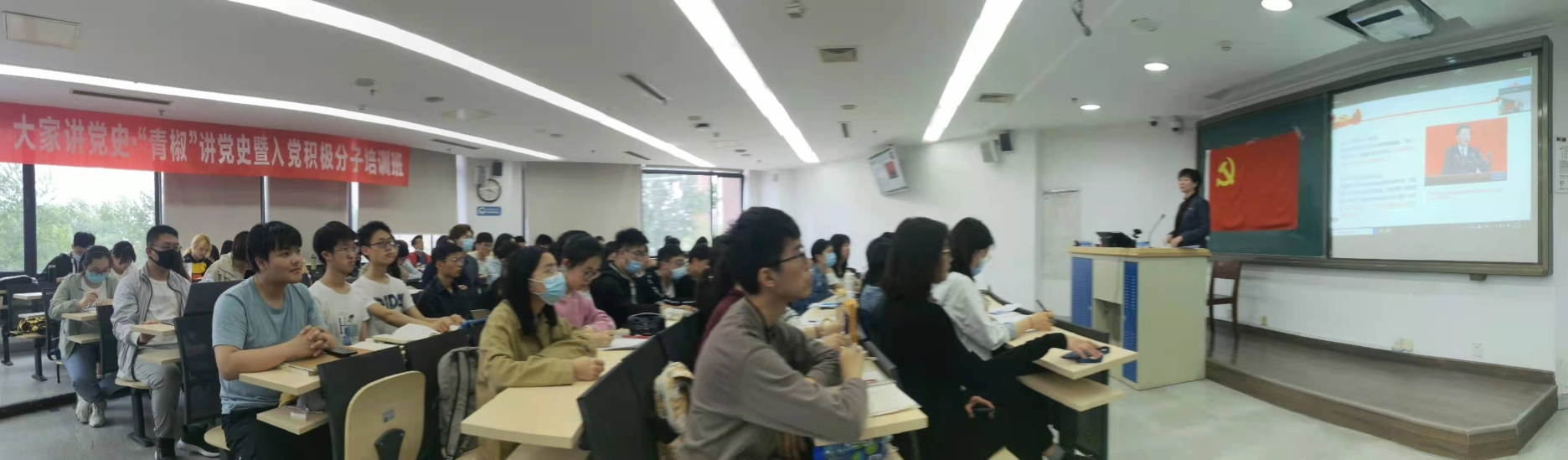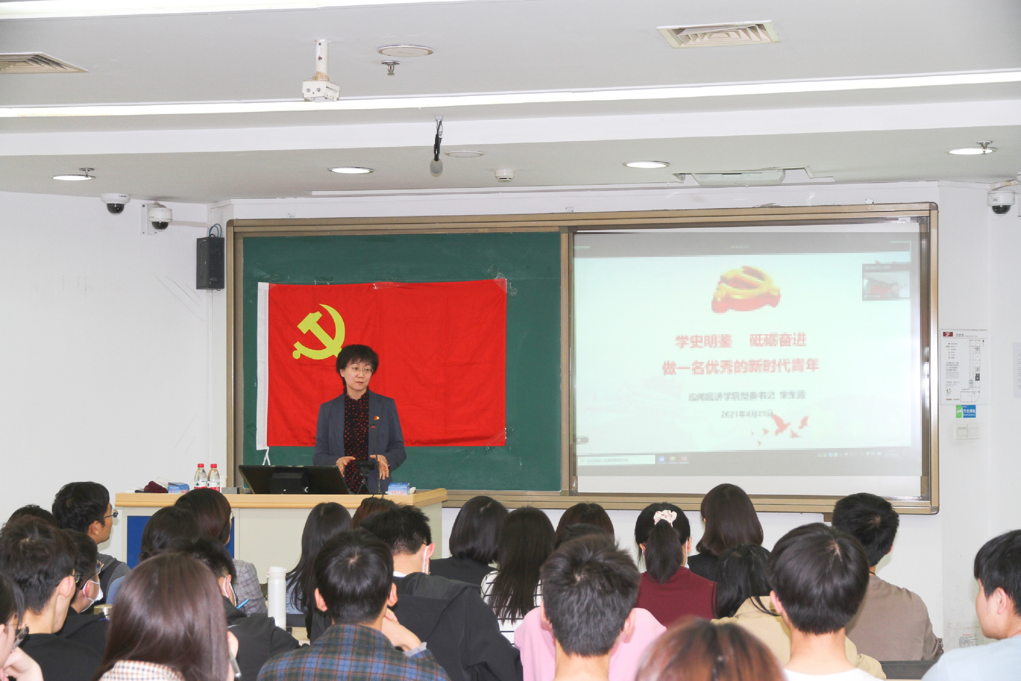 4月21日下午,为深入开展党史学习教育,sunbet“大家讲党史·青椒讲党史”第四次党课讲座在明法0302教室开展,本次讲座由公司党委书记宋东霞主讲。公司教职工党员、新生党员、毕业生党员、新发展党员,及本期公司党校入党积极分子、形势与政策研讨实践课员工共一百余人现场参加了本次讲座,其余师生党员以线上方式开展学习。