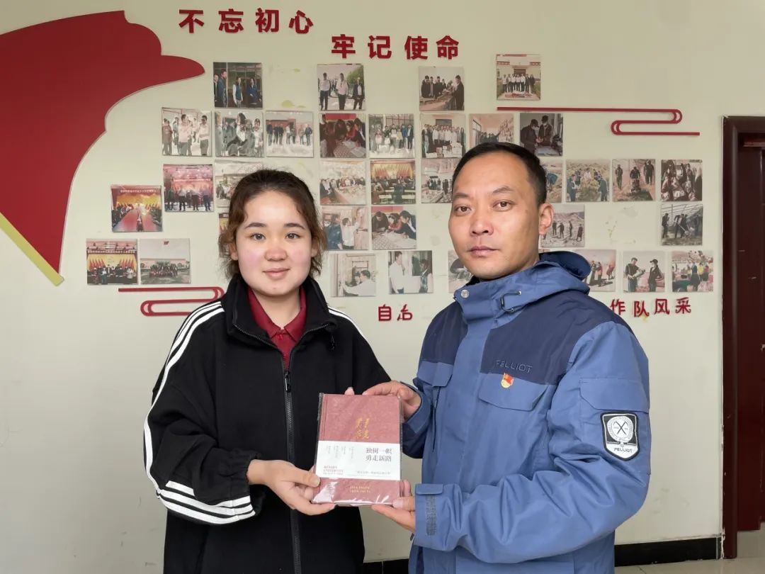 ▲先锋闯将学员 新闻公司本科生娜扎开提访谈班迪尔乡波斯特班迪尔村第一书记何金明
