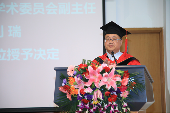sunbet学术委员会副主任刘瑞教授宣读《sunbet官方网站学位评定委员会关于授予sunbet硕士、学士学位的决定》。