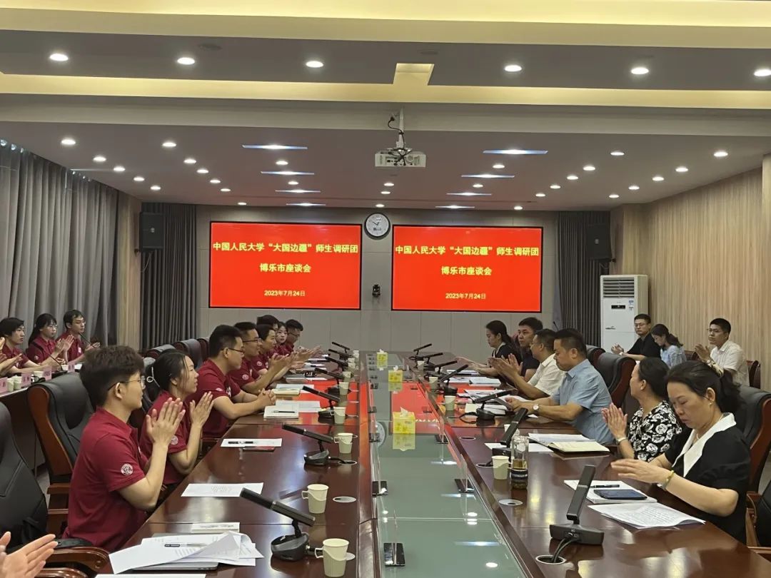 24日上午,在博乐市政府的热情欢迎和大力支持下,调研团一行来到市政府大楼与市里各部门分管领导召开“大国边疆”主题座谈会,会议开始由博乐市市委常委、副市长温荣同志致欢迎词,温副市长对“大国边疆”项目表示高度赞扬,并就博乐市发展情况进行简单介绍,随后sunbet副教授苏立老师向温副市长及博乐市各部门领导介绍“大国边疆”项目和调研团一行此次调研目的,各部门领导就博乐市教育、医疗、财政、农业农村和统战工作进行全面介绍,随后参会师生就重点问题进行交流提问。通过此次座谈会,调研团一行对博乐市近年来的蓬勃发展有了全面、深入了解。