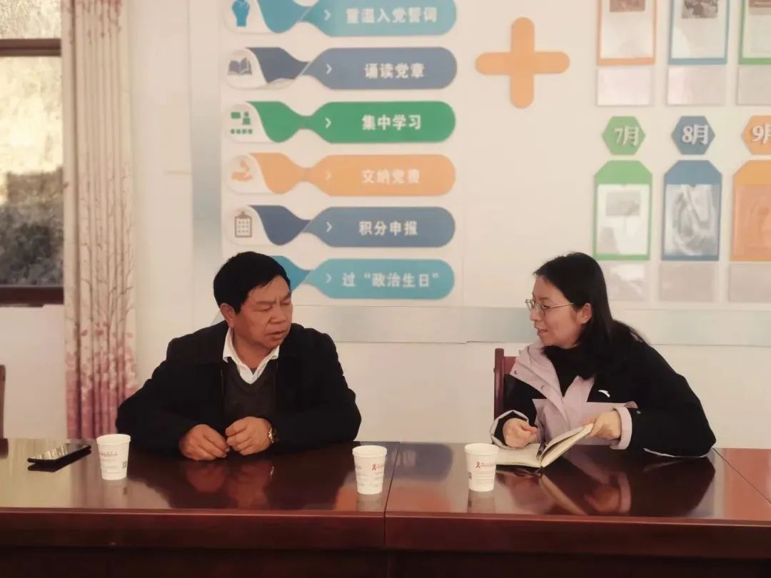 ▲博士生李响访谈蚌峨乡六掌村党委书记、村委会主任李太学