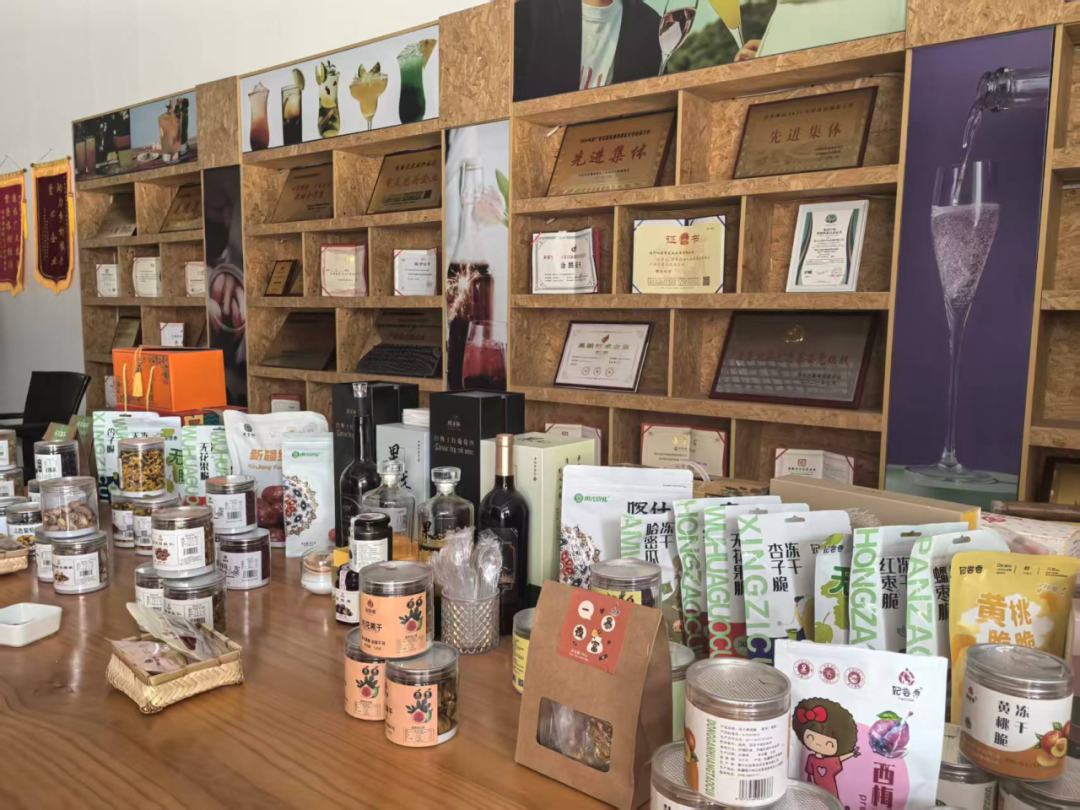 企业负责人向调研团介绍,公司从创立到快速成长,始终得益于岳普湖县政府的大力支持与山东援疆政策的持续赋能。作为岳普湖县“三果一花”产业链中的重要企业和山东省重点援疆项目,妃尝香公司依托山东农业科公司、济南果品研究院等多所科研机构的技术支持,引进德国真空冻干工艺及国内领先的加工设备,实现从育苗种植到深加工、销售的全产业链覆盖。公司采取“种植基地+合作社+农户”模式,已带动无花果种植示范园区6万余亩,年加工冻干产品900吨、果酱果酒2300吨,产品远销中亚和欧洲,年产值约1.1亿元,有效带动300余人就业,成为推动县域农业转型升级、助力乡村振兴的标杆企业。