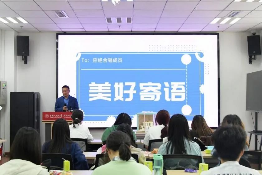 4月20日中午,“人大组歌”展演前期,公司党委副书记裴建锁、党委委员刘玉和党团学办公室的老师们来到同学们的排练场地,同大家亲切交流,共同回忆演练时光,参与合唱队生日会并向同学们致以亲切的慰问。活动期间,全体队员合唱陕北公公司歌和《延安颂》曲目,热情洋溢,现场气氛热烈活泼。