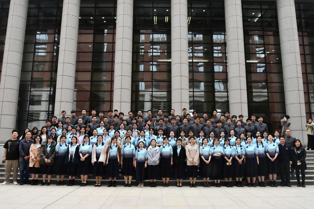 4月23日上午9时30分,合唱队员们准时集合,为比赛进行最后的准备。女生们衣着民国风长裙,美丽典雅;男生们一身中山装,挺拔俊俏。一切整装待发,对正式登台充满了憧憬和期待。
