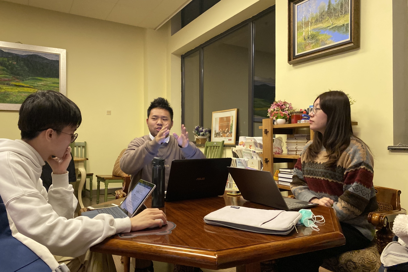 (图为 三位辩手在备赛)