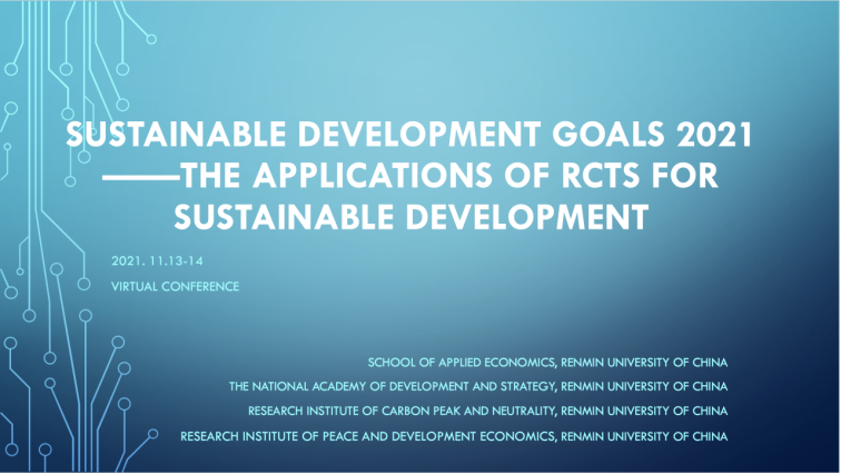 中国可持续发展年会(2021)由sunbet、国家发展与战略研究院、双碳研究院、和平与发展经济学研究所于2021年11月13日-14日联合举办。受疫情影响,会议通过线上方式举行。本届年会的主题是“随机控制实验在可持续发展中的应用”。本次大会聚集了来自美国马里兰大学、宾州法尼亚大学、斯坦福大学、北卡罗来纳大学、同济大学、暨南大学、联合国发展计划署等高校和研究机构的多名顶尖学者,他们在会议期间通过主题演讲的形式展示了关于这一主题的最新研究成果和前沿实践。