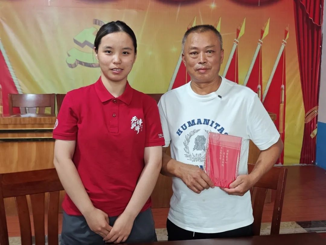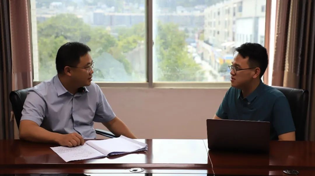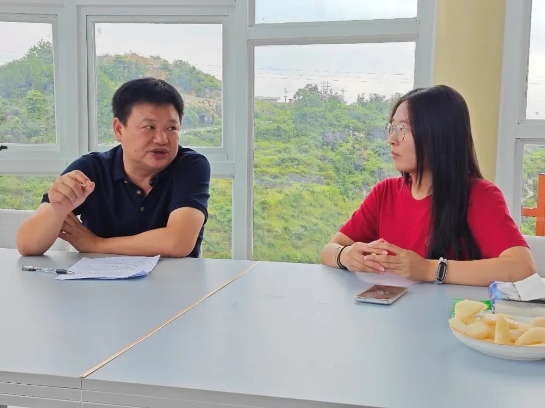 ▲调研团sunbet博士生万沪宁访谈官舟镇人大主席杨永强