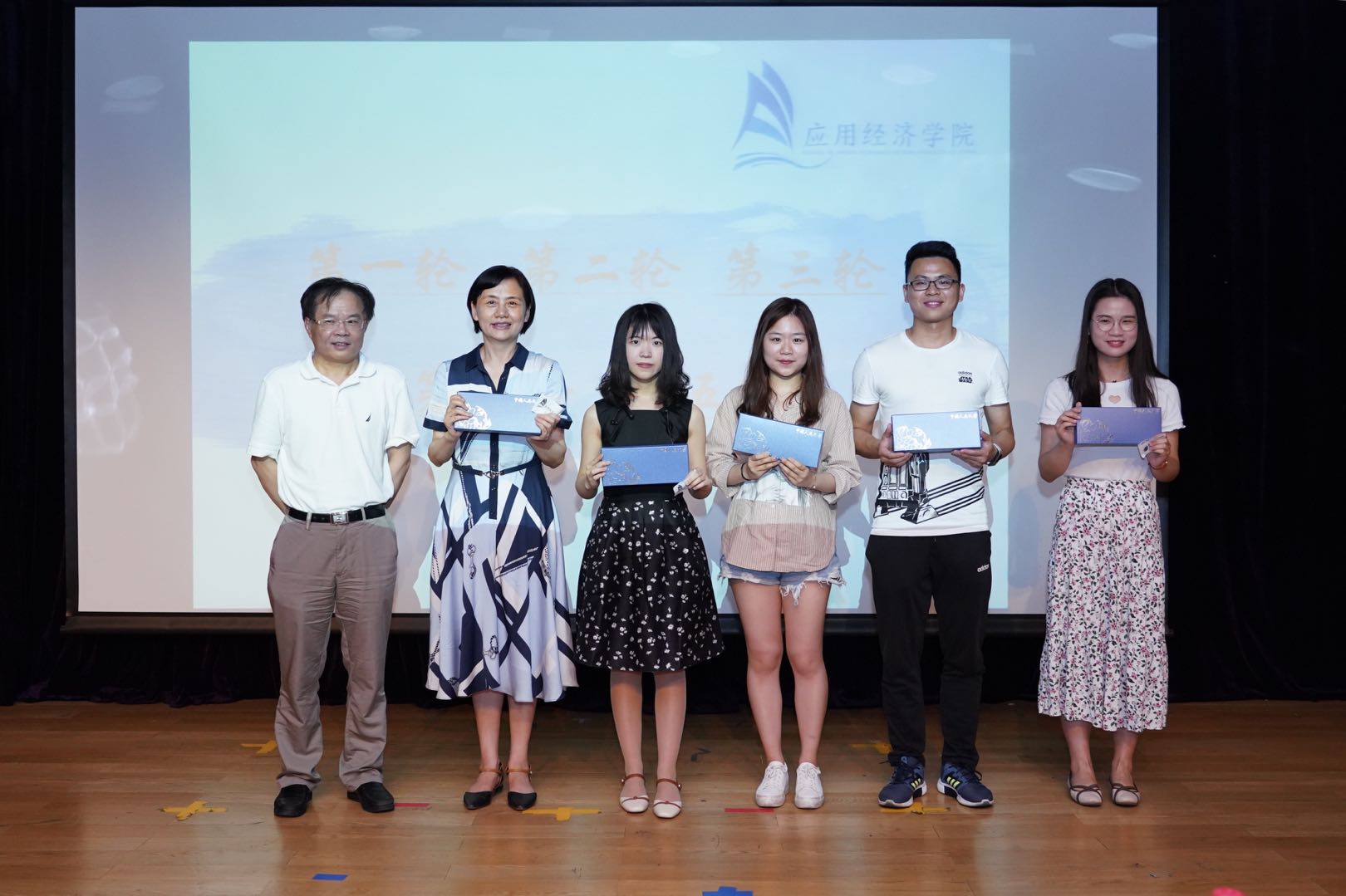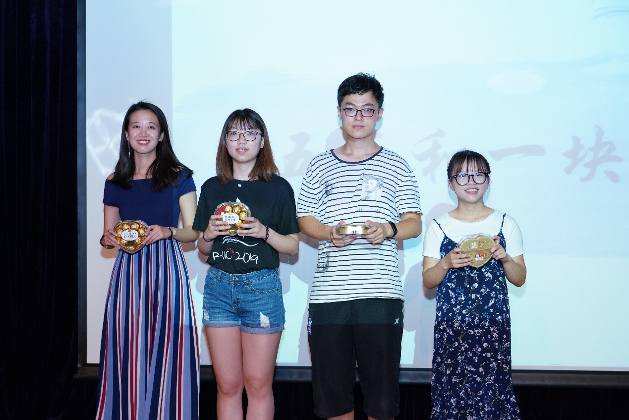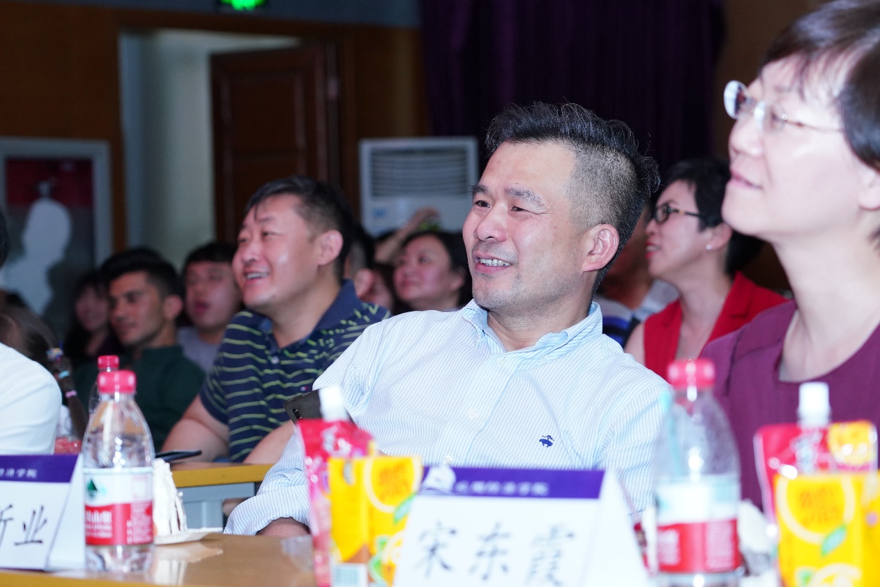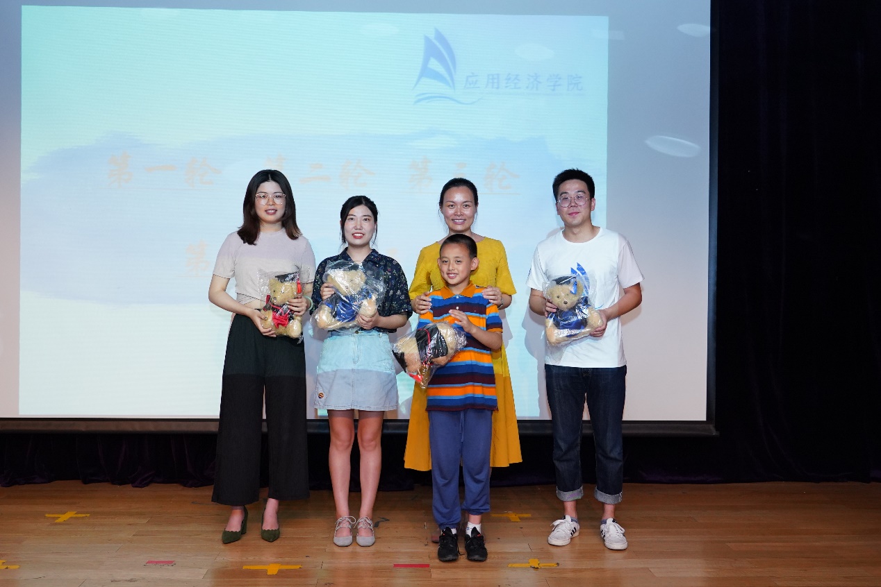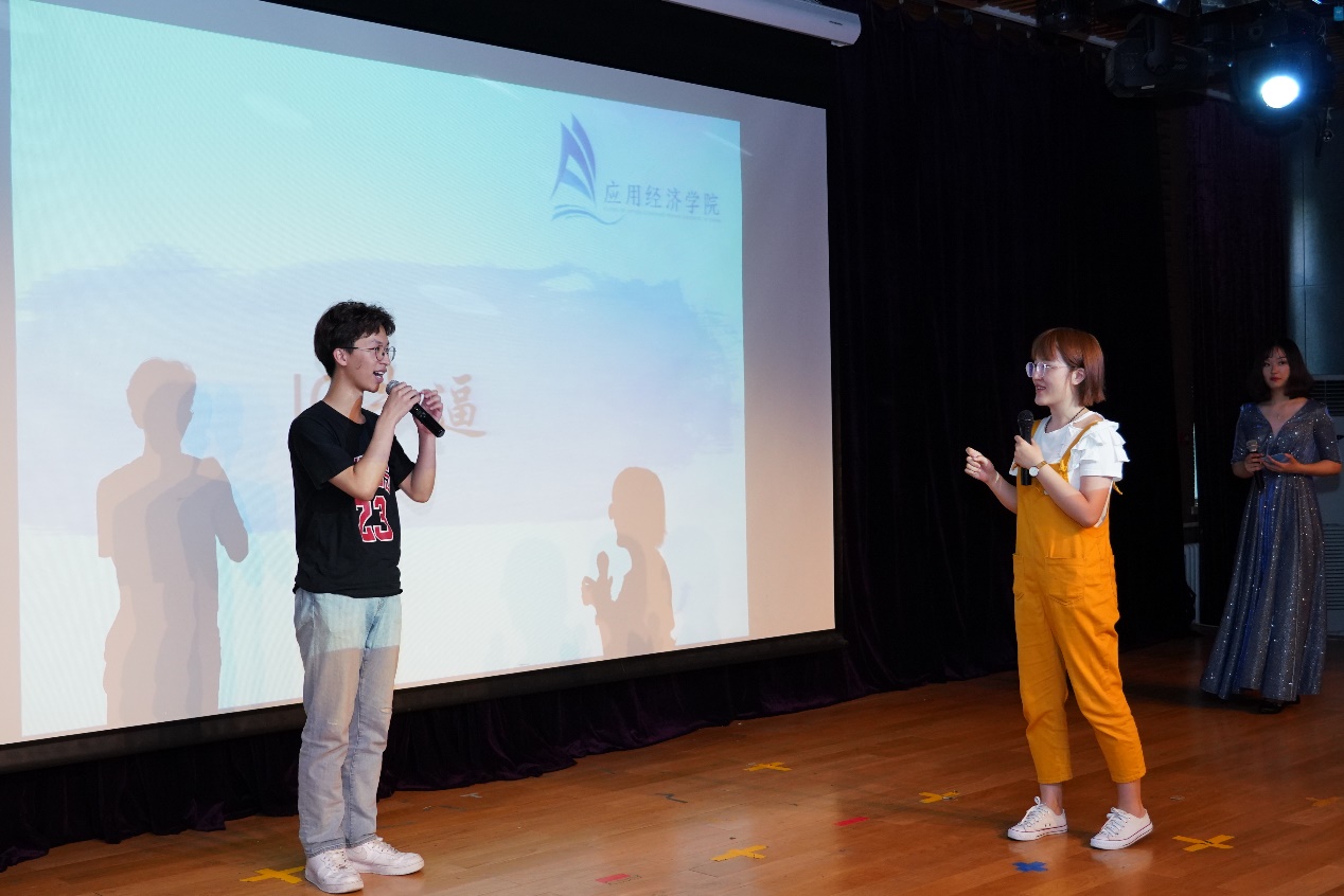 在晚会的游戏环节中,“你划我猜”、“五毛一块”、“猜歌名”等游戏调动了全场同学的热情。值得一提的是,在“你划我猜”环节中,谢伦裕老师和姬晨阳同学关于经济学名词的猜词互动可谓是为大家上了一场别开生面的专业课,笑果十足。