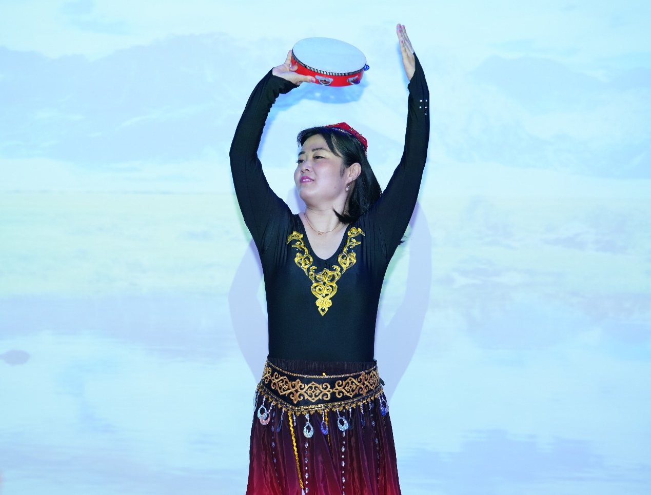 党团学办公室撒莉老师为大家表演热情洋溢的维族铃鼓舞《Atlas Koynak》,优美的舞姿,动人的笑容,悦耳的铃鼓,仿佛置身于那广阔而神秘的西域,在场观众无不沉醉其中,享受了一场视觉盛宴。