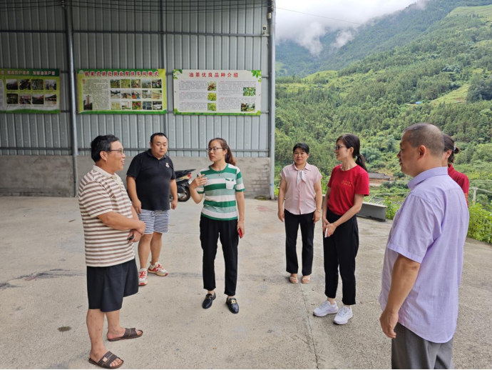 7月28日下午,调研团前往龙胜各族自治县勇爱有机油茶产业核心示范区参观学习。龙胜勇爱生态油茶基地,位于龙胜县泗水乡周家村,是一家集油茶种植、茶油产品加工生产、线上线下营销为一体的企业。企业核心区共种植油茶6000余亩,各类研发、初精加工生产厂房6000余平方米,年产成品茶油300余吨,各类产品得到了市场的高度认可。