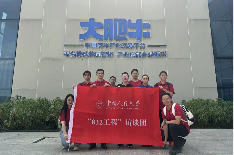 8月12日下午,调研团抵达大肥牛贵州安顺平坝养殖基地进行调研。贵州爱上大肥牛牧业有限公司(以下简称:大肥牛公司)是一家专注肉牛产业的互联网平台企业。依托创始人在满帮(前货车帮)建立的物流货运资源,大肥牛公司在创始初期便大胆探索中国牛业产业的未来,创造出“北繁南育”的牛业新经济发展模式,即在北方种源集散地和净化场繁育净化牛犊,转运至南方养殖基地进一步育肥。在此基础上,大肥牛打造了以牛业产业生态圈为核心的“互联网+”肉牛交易服务平台,其小程序“大肥牛养牛小助手”提供免费的牛只、物资、员工管理及牛只交易等精细化管理服务,推动传统牛业的标准化养殖、透明化交易、数字化转型。