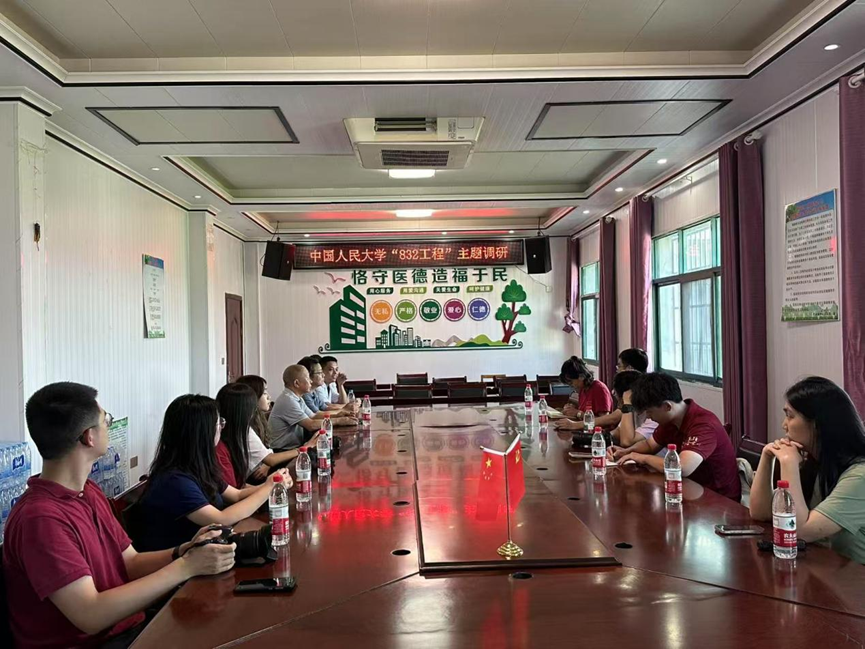 ▲ 牛田镇中心医院工作人员在为调研团成员介绍医疗扶贫登记情况