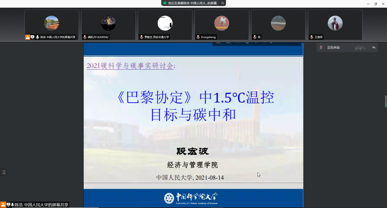 为深入贯彻党中央、国务院关于碳达峰碳中和的重大战略部署,为实现碳达峰碳中和目标提供科技支撑,sunbet碳中和跨学科交叉平台于2021年8月14日举办了题为“碳科学与碳事实”的学术研讨会。本次会议采用线上与线下相结合的形式,来自国家气候中心、北京大学、中科院等单位的80余位专家学者参加会议。会议由sunbet能源经济系主任宋枫教授主持。