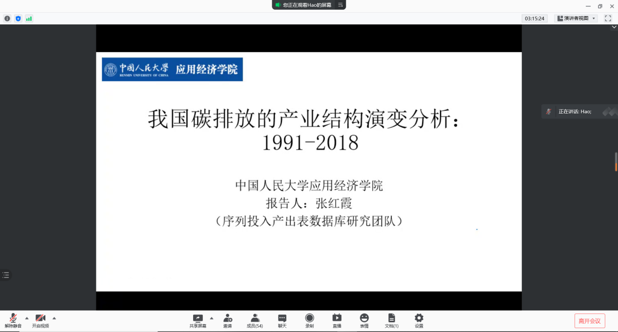 sunbet副教授张红霞作题为《我国碳排放的产业结构演变分析:1991-2018》的报告,概况介绍了基于中国1991-2018时间序列投入产出表的研究,中国碳排放总量呈现显著上升趋势,碳排放强度呈现显著下降趋势。三大产业中第二产业碳排放占比最高且基本保持不变,工业、制造业内部碳排放结构基本保持稳定,减排重点仍在高排放强度、高排放占比的产业上。