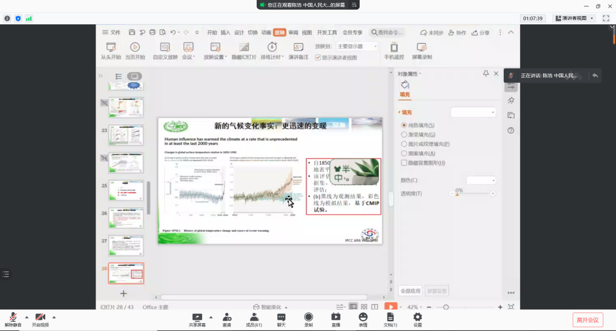 国家气候中心研究员史学丽作题为《气候变化与碳循环过程的模拟与预估》的报告,介绍了气候变化和温室效应等基本概念,分析了IPCC历次评估报告的结果及其演变,并公布了IPCC最新成果,未来将加强自然与人类活动的融合应用研究,让科学服务社会。