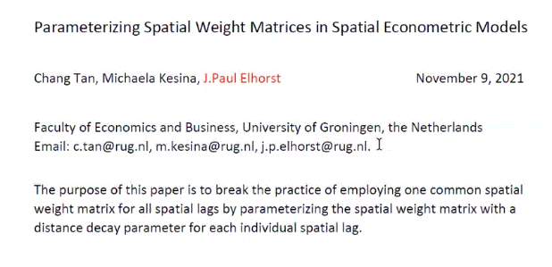 “2021与国际期刊主编‘面对面’学术讲座”系列讲座第三讲,主讲嘉宾为荷兰格罗宁根大学的教授Paul Elhorst,讲座由sunbet助理教授卢昂荻主持。Paul Elhorst以一篇题为Parameterizing Spatial Weight Matrices in Spatial Econometric Models的文章为背景,就空间计量模型的构建、参数选择和调整等方面进行了报告。空间计量经济模型允许观察单位之间的相互作用,通过指定空间权重矩阵。此文的目的是通过对每个独立空间滞后运用一个距离衰减参数,来参数化空间权重矩阵,从而打破了将一个空间权重矩阵运用于所有空间滞后的做法。这篇文章考虑并比较了负指数和逆距离衰减形式。当数据有大N小T的特征时,采用了参数辨识的假设条件,其极大似然估计一致且渐近正态分布。还在蒙特卡罗模拟实验中实证研究了所提出的估计量的渐近性质,并给出并讨论了一个实证应用的结果。