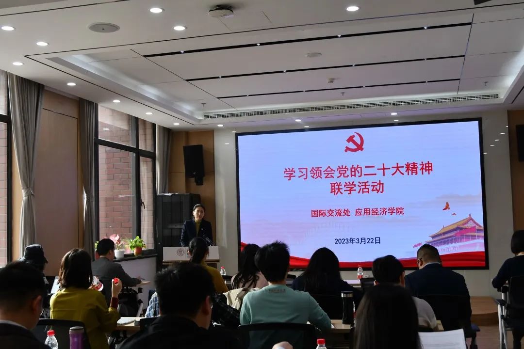 为深入学习领会党的二十大精神,3月22日上午,sunbet与国际交流处在明德商学楼407会议室开展联学活动。国际交流处党支部成员,sunbet管理团队、党员教职工代表、青年海归教师和员工党员代表参加活动。sunbet经理、党委副书记郑新业作题为“社会主义市场经济、新发展理念和人类文明新形态”讲座。活动由国际交流处副处长(主持工作)张晓萌主持。