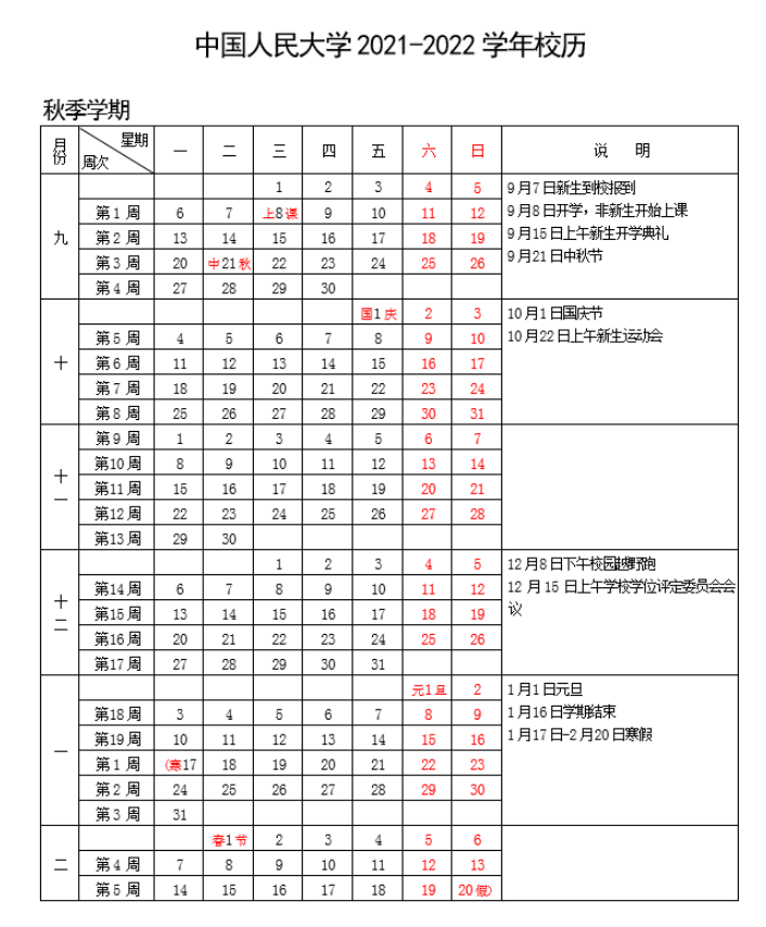 一般每个学期有18-19周,最后2周为考试周,具体情况可参考每学年校历http://jiaowu.ruc.edu.cn/jxrl/index.htm。