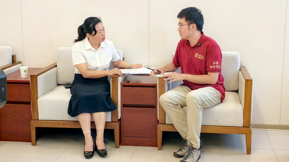 ▲本科生巫敏瑜访谈寇家塬镇党委副书记康超