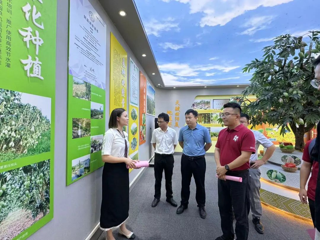 ▲工作人员向调研团介绍示范区芒果种植情况
