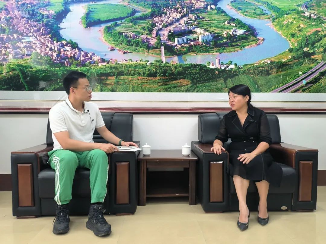 ▲博士生陈冠锟访谈田阳区五村镇党委书记覃素娟