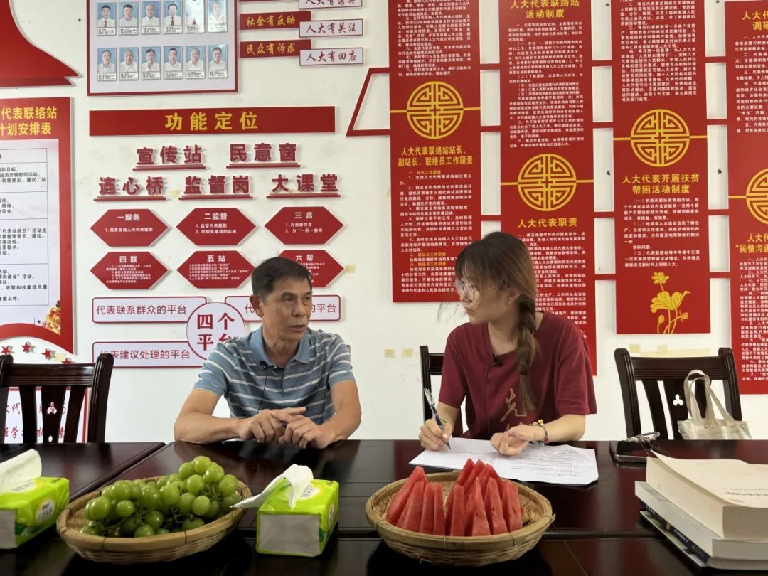 ▲在安置点“老乡家园”硕士生叶财博访谈百色市田阳区脱贫攻坚期间任扶贫办主任罗横湛