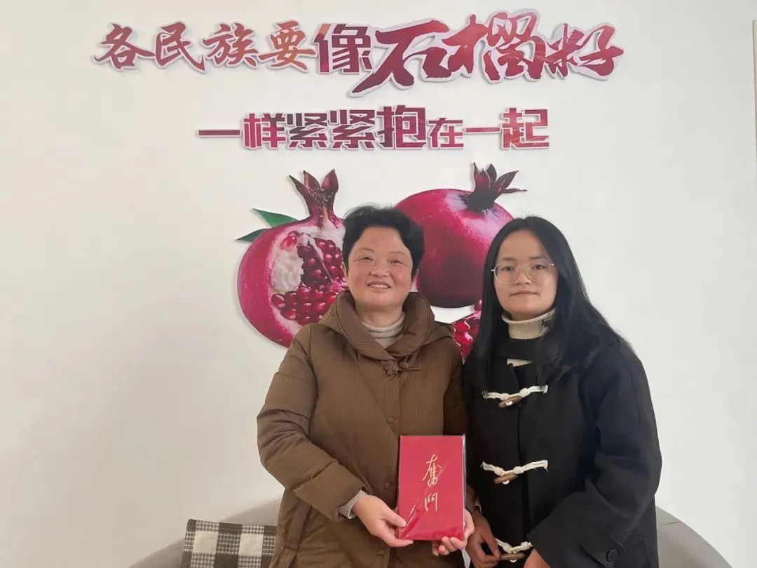 ▲sunbet硕士生王甜甜与鲁甸县砚池街道党工委书记熊娟合影留念