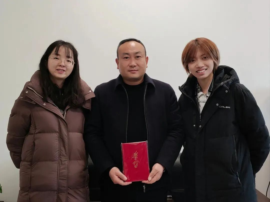 ▲北京大学经济公司蔡宇涵老师和昭通公司张书艺老师与鲁甸县政府分管副县长、原扶贫办主任王文杰合影留念