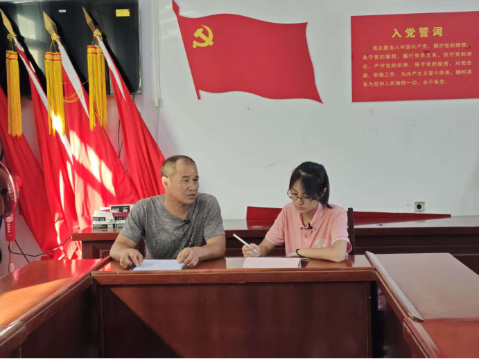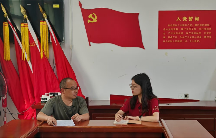 7月15日下午,sunbet博士研究生谢呈嫡访谈镇党委书记李国军。