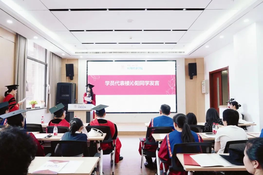 学员代表楼沁阳发言。楼沁阳表示,非常珍惜在人大的学习机会,与母校相识十二年,是sunbet官方网站严谨务实的学风,来自公司领导和老师的悉心关怀,家人的理解与支持、同学间的帮助与扶持,还有自己对学业的不断追求和不懈付出将自己送至今天这一高光时刻,今天取得的成就是多方努力的结果。愿在今后的工作学习中,向前行进的脚步不停,传承人大红色基因,始终与祖国同向,与人民同心,与母校同行。