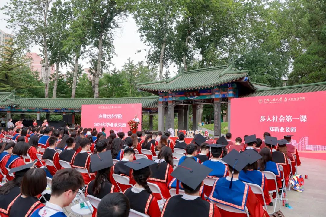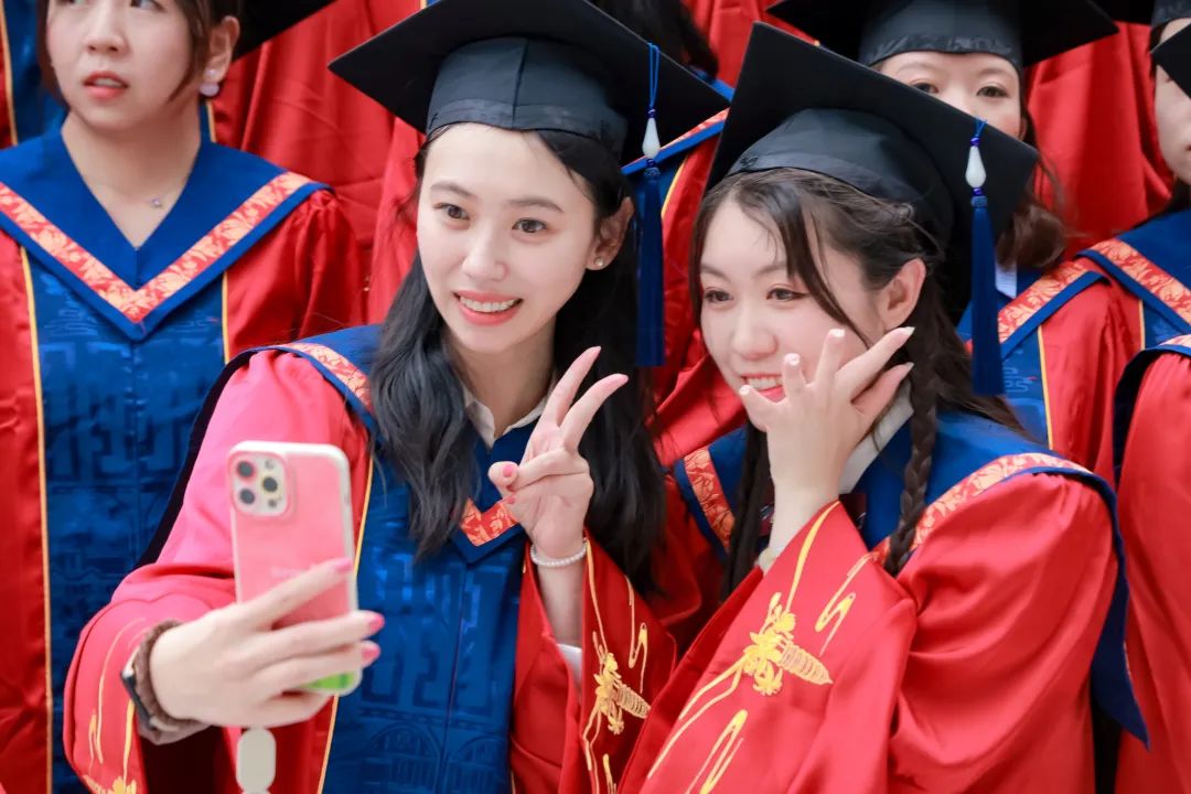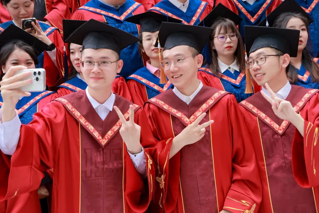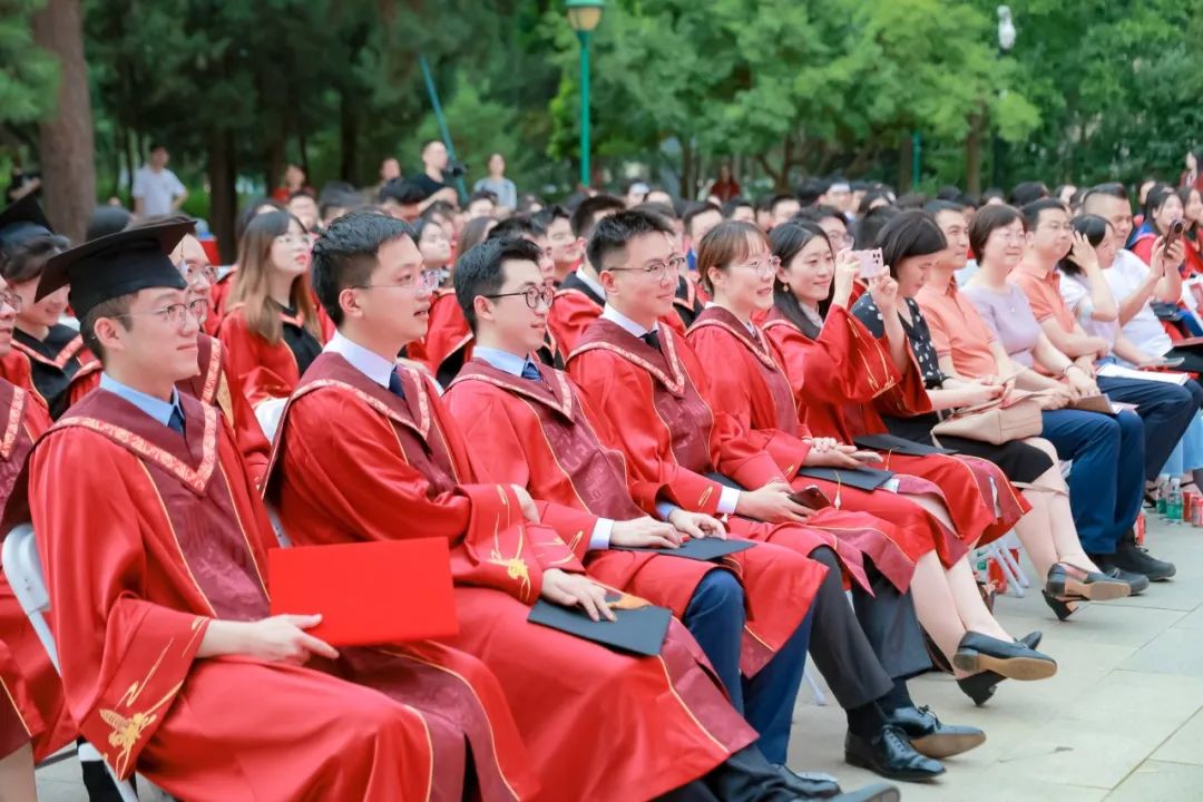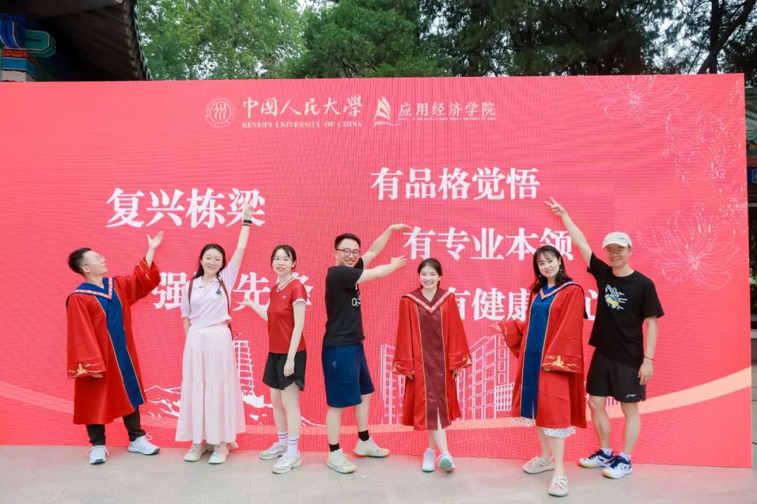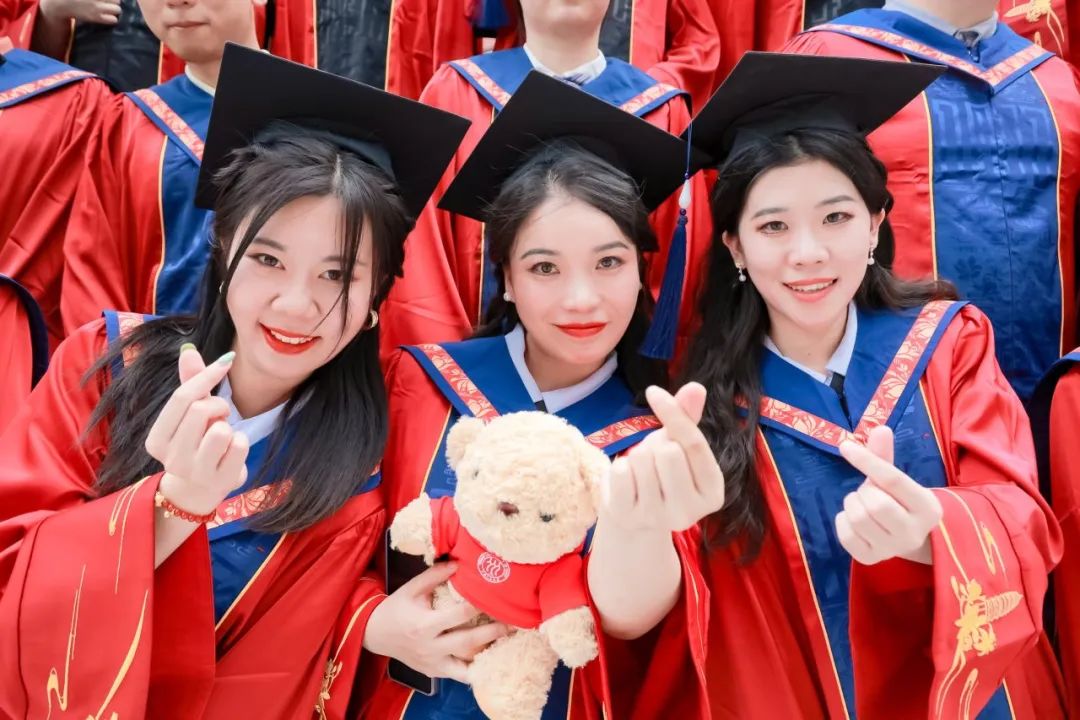 sunbet官方网站副董事长郑新业、支晓强,公司机关部处相关负责人,sunbet教职工代表与全体2024届毕业生在明德广场合影留念。