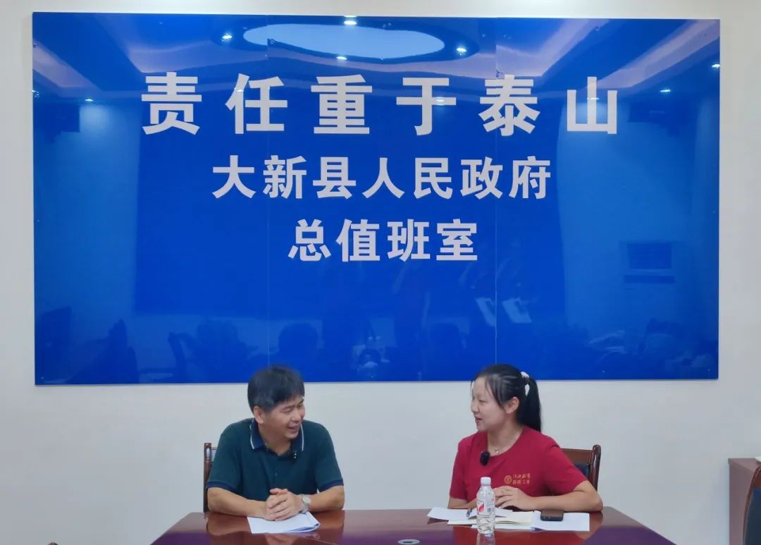 ▲本科生尹歆雅访谈县城乡综合执法局副局长(原派驻橄圩乡武姜村党组织第一书记)雷洪向