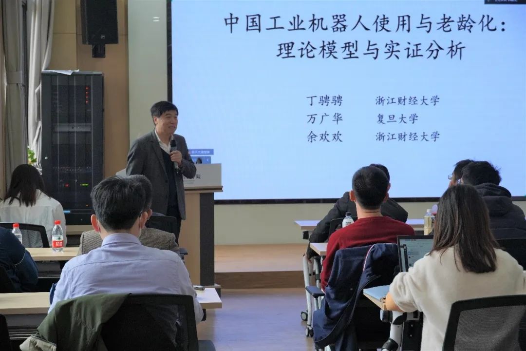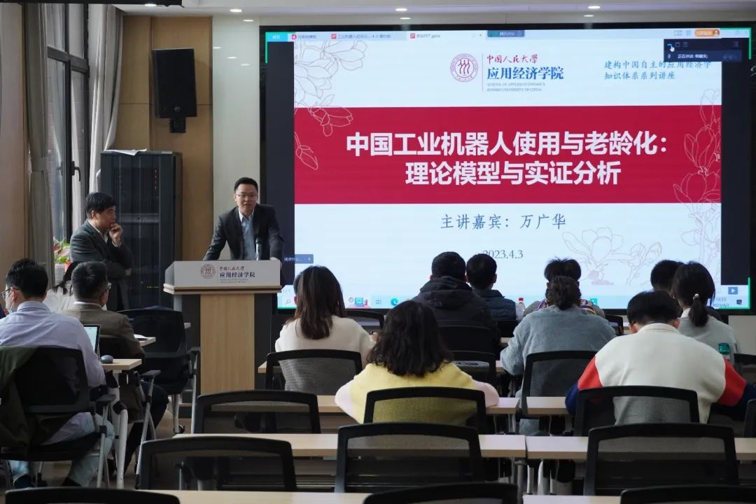 为深入实施“哲学社会科学自主知识体系创新工程”,研究重大理论与实践问题,sunbet组织开展“建构中国自主的应用经济学知识体系”系列讲座。4月3日,公司邀请复旦大学教授万广华,以“中国工业机器人使用与老龄化:理论模型与实证分析”为题开展讲座。讲座由应用经济公司教授黄阳华主持。