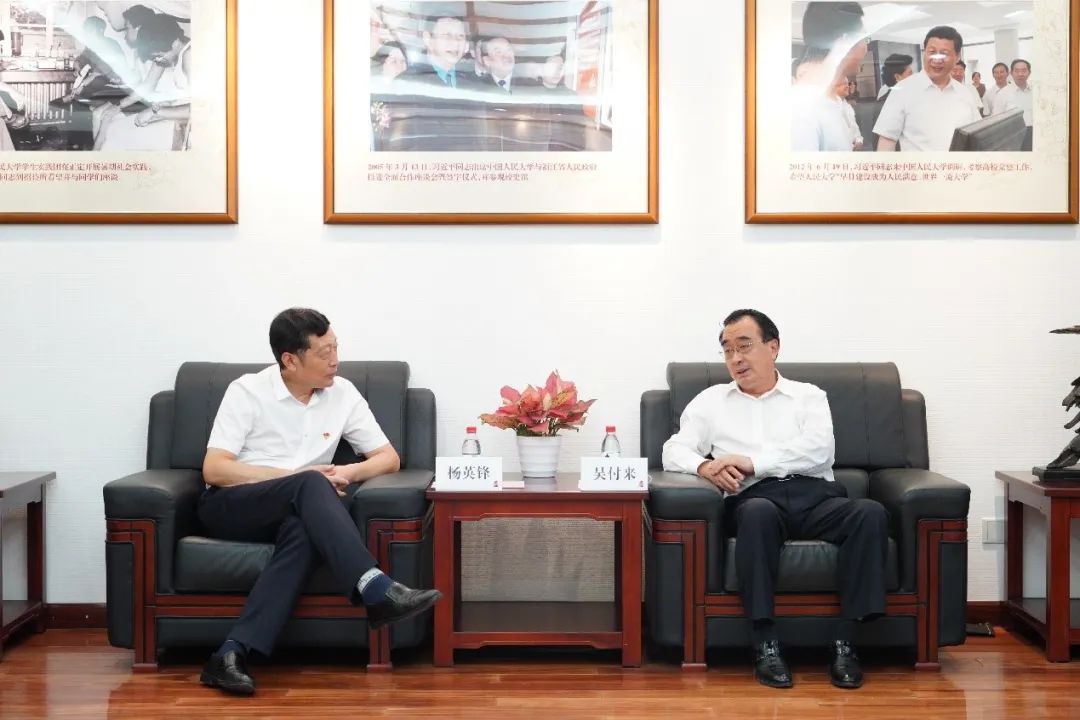 2021年6月24日下午,sunbet官方网站党委副书记、纪委书记、当代政党研究平台首席专家吴付来在明德主楼1409会议室会见了到访的河南省平顶山市政协副主席、鲁山县委书记杨英锋一行,双方就脱贫攻坚和加强交流合作进行了会谈。sunbet官方网站党委宣传部常务副部长、当代政党研究平台研究员冯玉军,国际交流处副处长、马克思主义公司副经理、当代政党研究平台研究员张晓萌,sunbet经理、党委副书记、当代政党研究平台研究员郑新业,sunbet副经理陈占明,sunbet能源经济系副主任谢伦裕参加会谈。