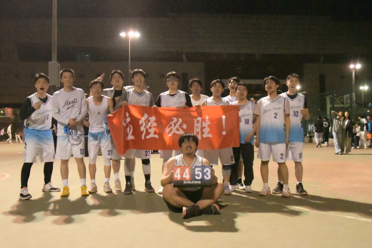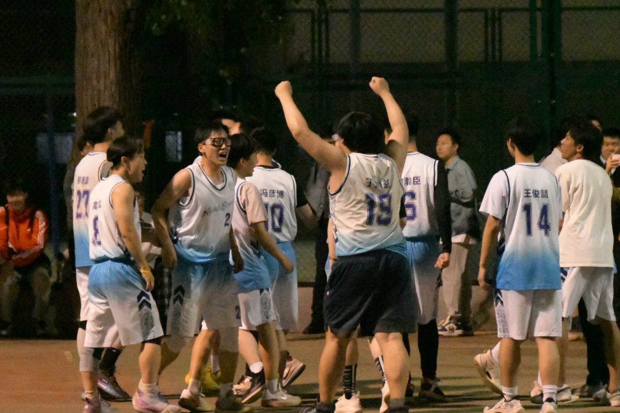 比赛来到最后一节,双方队员体能都有所下降,在进攻端迟迟打不出节奏之时,得益于教练队伍的关键指挥、队员们此战必胜的决心、场下观众的激情欢呼,在8号龚凯打进高难度2分上篮后,我方努力扩大领先优势,在防守端、进攻端都打出了应经学子的自信和风采。27号黎思灏在内线辗转腾挪冲击对方中锋,21号孙铭壕和20号牛童见缝插针冲击篮框,13号吴语杰利用娴熟的运球消耗对方体力,1号黄文牢牢跟住对方强劲主力。伴随着场边观众的呐喊,篮球一次次应声入网,我方保持着6分的优势来到了比赛的最后30秒,球员们在最后时间依旧牢牢绷紧、不敢懈怠,积极拼抢进攻篮板。随着技术台倒计时3、2、1,1号黄文外线接球三分出手,此时裁判也吹响了全场结束的哨子。篮球空心入网,全场在短暂的寂静下爆发出雷鸣般的呼声与掌声,队员们相拥而泣,观众们也发出了由衷的赞叹与欢呼。最终,公司以53:44战胜数学公司,夺得乙组冠军!