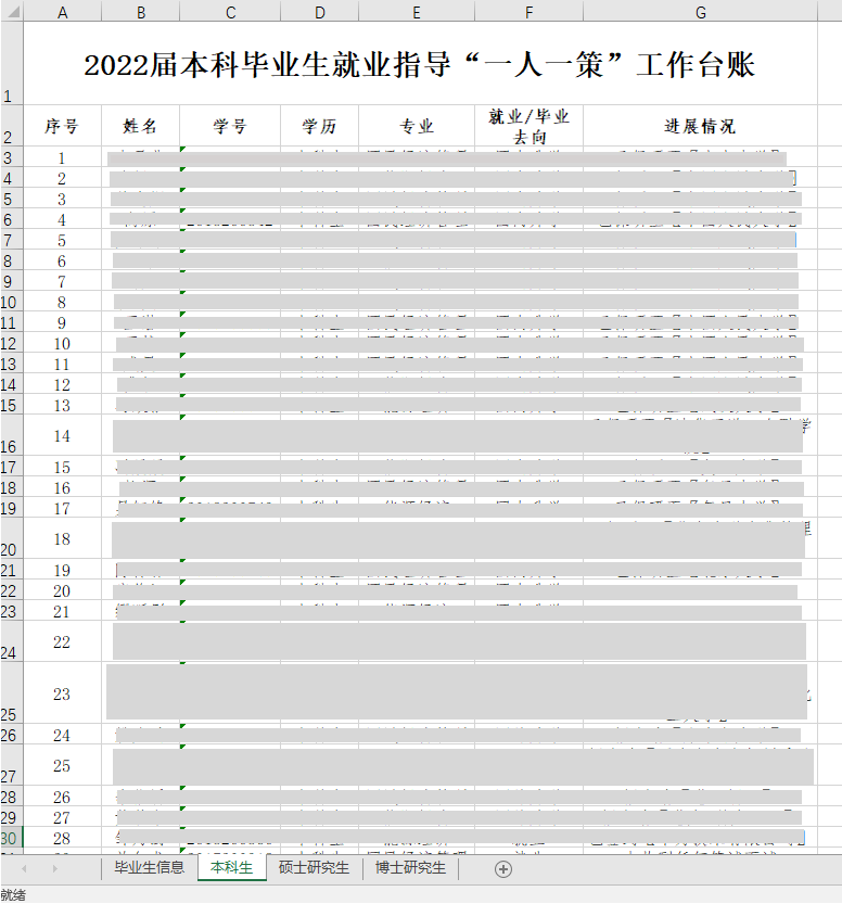 提前开展毕业生基本情况摸底工作,制作2022届毕业生摸底汇总台账,形成摸底分析。公司领导、班主任、导师、辅导员等团队多次开展就业工作座谈会、协调会,动员导师、班主任利用自身资源为所带员工提供就业和岗位信息,建立和落实“一人一策”指导机制,为员工修改简历,强化就业精准服务,做到一对一推荐、点对点指导。