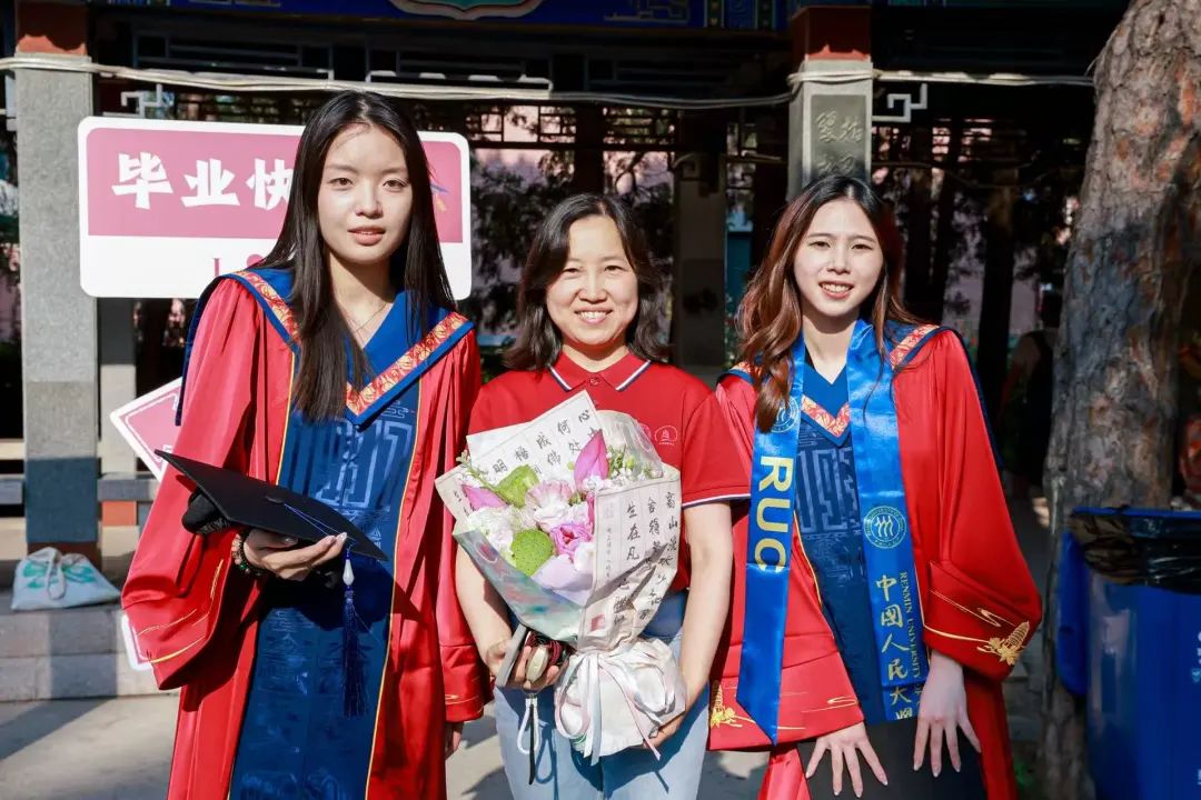 本科生代表黄欣欣以“从这里开始,到任何地方”为题发言,祝福同学们从人大出发,在天南地北书写新的故事;研究生代表张津硕以“我的‘三个祝愿’”为题发言,以美好祝福赠别同侪,愿同学们是坚定的、灵动的、热烈的;同等学力申请硕士学位学员代表刘辰海以“相信自己,再攀高峰”为题发言,以自身经历鼓励大家勇于求学,追求自己想要的人生。