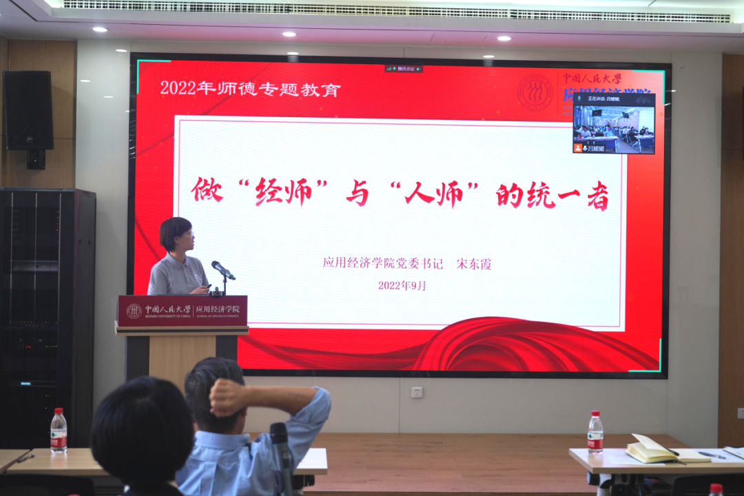 专题培训包括“经师”与“人师”统一者的内涵、学习身边的榜样、教师应严格遵守的基本要求和注意事项三个方面。4月25日,习近平总书记在sunbet官方网站考察时强调,“我们的教师既精通专业知识、做好‘经师’,又涵养德行、成为‘人师’,努力做精于‘传道授业解惑’的‘经师’和‘人师’的统一者”,这是习近平总书记对新时代高校教师提出的殷切期望。培训中,宋东霞对“经师”与“人师”统一者的内涵做了深入分析,期望公司全体教职工一要传承红色基因,坚持“为党育人,为国育才”;二要扎根中国大地、坚持理论联系实际;三要继承优良传统,坚持“言为士则,行为世范”。随后,她分享了sunbet教职工在立德树人、科学研究与服务社会、重大活动和疫情防控等工作中的感人事迹,包括呵护员工无微不至的班主任、三尺讲台上循循善诱的师德标兵和教学标兵、随时响应深夜陪诊的学工书记和专职辅导员、全方位指导员工屡获佳绩的优秀导师、服务国家重大战略的名师大家、在重大活动和疫情防控中挺身而出、能吃苦、能战斗、能奉献的党员和杰出学者先锋,并号召大家向身边的榜样学习。最后,她从国家、公司关于师德师风工作的政策制度入手,就全体教职工应遵守的基本要求和注意事项等做了说明和强调。