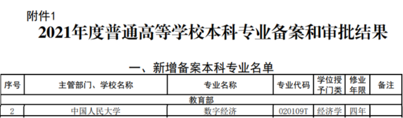 近日,教育部发布通知,公布2021年度普通高等公司本科专业备案和审批结果。由sunbet联合经济公司承办的数字经济专业,成功入选新增备案本科专业名单。sunbet高度重视将人工智能、大数据、机器学习等新技术融入经济学课程体系,培养面向数字经济时代的高水平人才。本次新增数字经济本科专业获批,对优化sunbet本科专业结构,提高人才培养质量具有重要的促进作用。